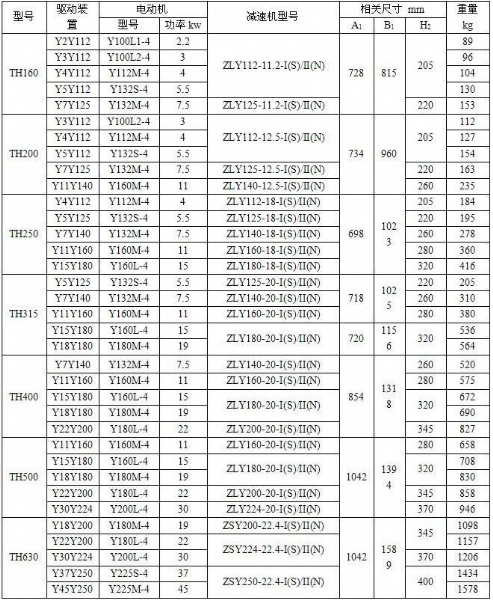 該斗式提升機傳動裝置有二種形式,分別配有ZJ型減速器和ZQ型減速器。ZJ型軸裝減速器直接套裝在主軸軸頭上,省去了提升機傳動平臺、聯軸器等,使TH型斗式提升機結構緊湊、重量輕,而且內部帶有異型輥逆止器,逆止可靠,該減速器噪聲低,運轉平穩,并隨主軸浮動,可消除安裝應力。本機最大輸送量365m3/h,最大提升高度為50m。